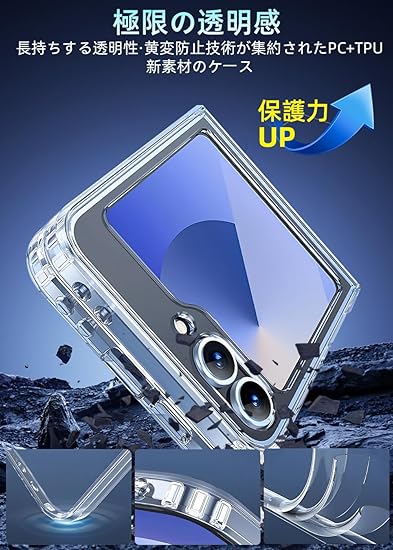 ZXZone for Galaxy Z Flip6 ケースクリア*1枚+ガラスフィルム*1枚+カメラフィルム*1セット レンズ保護 衝撃吸収 TPU+PC 黄ばみにくい 耐黄変 ワイヤレス充電対応 ギャラクシーZ Flip6 SC-54E 透明スマホケース 保護カバー 保護フィルム (Galaxy Z Flip6)1