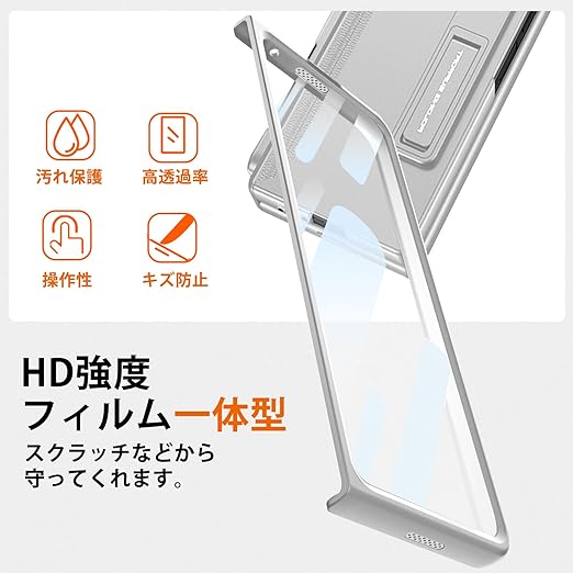 NINKI適応Galaxy Z Fold 6 ケース (SC-55E / SCG28) PC製 ペン収納 キックスタンド ヒンジ保護 フィルム一体型 折り畳み式 ストラップホール Samsung Galaxy Z Fold6 5G スマホ保護ケースカバー (シルバー)1