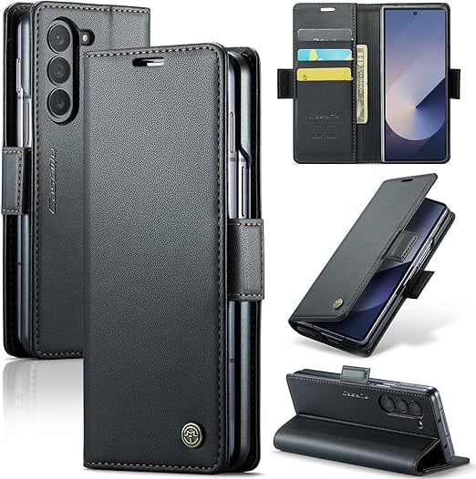 RicYeel Samsung Galaxy Z Fold6 対応 ケース 手帳型 レザー 衝撃吸収 TPU素材 スマホケース [4色選択] 耐衝撃 全面保護 カード収納 スタンド機能 磁気バックル付き 財布型カバー Samsung Galaxy Z Fold6 用 ケース (ブラック)1