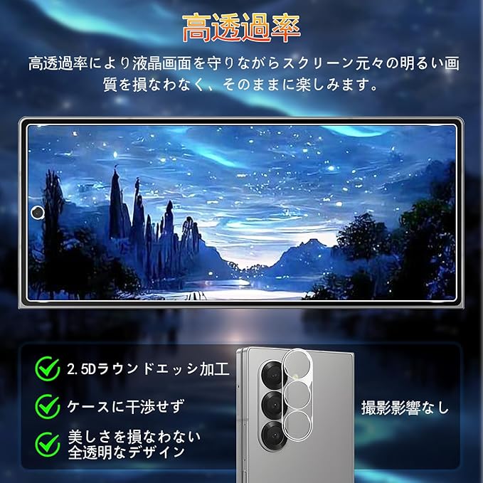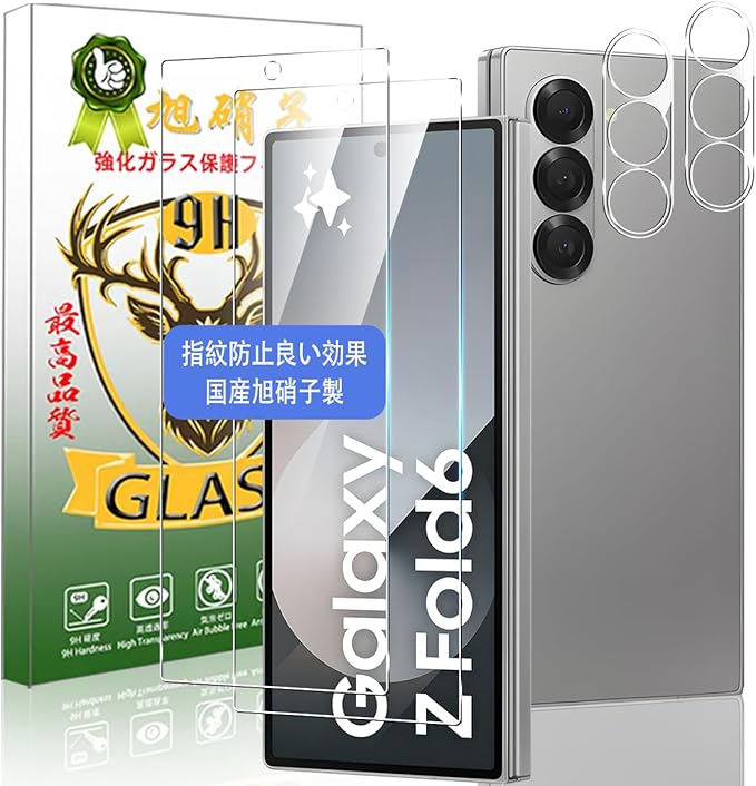 対応 Galaxy Z Fold6 ガラスフィルム ZFold6 フィルム +レンズ保護フィルム(2枚入)【国産AGC旭硝子素材】ギャラクシー Z Fold6 強化ガラス 液晶保護フィルム 厚さ0.26mm 薄型 3D Touch対応 硬度9H 高透過率 飛散防止 耐衝撃 指紋防止 気泡ゼロ 自動吸着 貼り付け簡単 ラウンドエッジ加工1