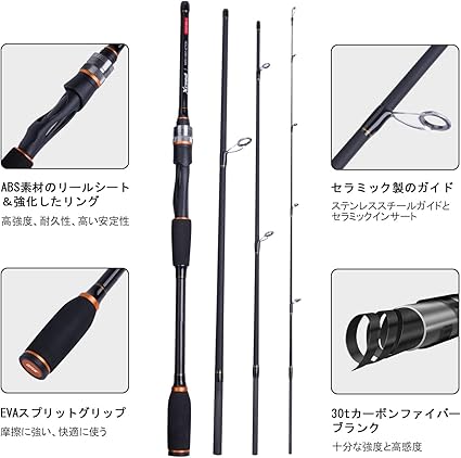 VUONG スピニングロッド/ベイトロッド ブラック 青 オレンジ グリーン シルバー 萌黒 迷彩ブラック 釣りロッド EVAグリップ 釣竿 カーボン 軽量 携帯型 投げ竿 海水淡水適用 釣り具 シーバス フィッシングロッド エギングロッド海釣り 4本継ぎ