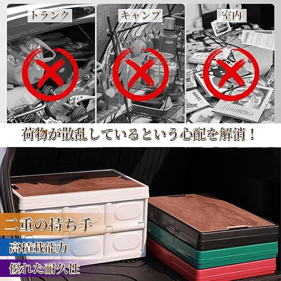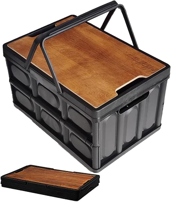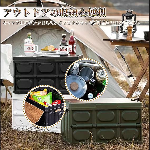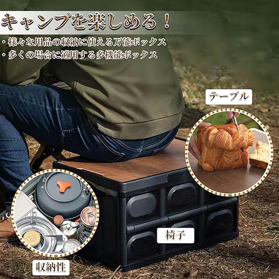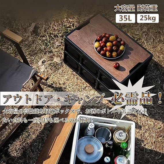 Yoseka キャンプ 収納ボックス 折りたたみ 35L 持ち手 収納ボックス キャンプ用品 アウトドアボックス コンテナ ボックス 折り畳み キャンプ ボックス 収納ボックス 蓋付き コンテナボックス トランク 収納 大容量 収納ケース ブラック