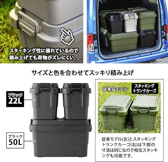 リス 収納ボックス スタッキング トランクカーゴ 22L ブラック 日本製 TC-20S