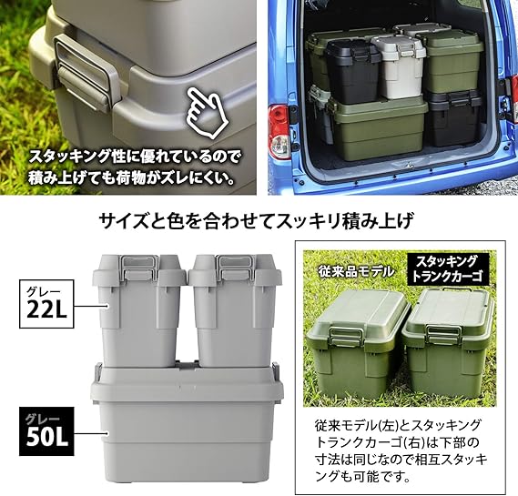 リス 収納ボックス スタッキング トランクカーゴ 50L グレー 日本製 TC-50S