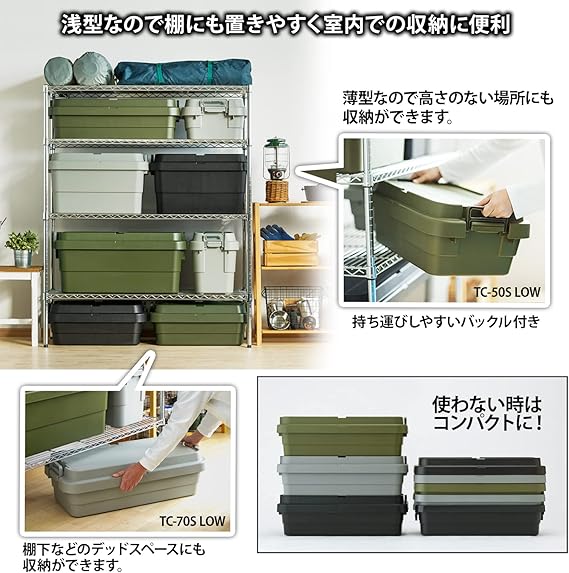 リス 収納ボックス スタッキングトランクカーゴ 40L ロータイプ グレー 日本製 TC-70S LOW