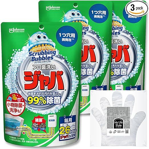【Amazon.co.jp 限定】 スクラビングバブル 風呂釜洗浄剤 ジャバ 1つ穴用 160g×3個 お掃除手袋付き 浴槽 お風呂 洗剤 掃除 汚れ まとめ買い お風呂掃除1