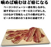 ベーコンのジューシー感を残しながら、固すぎないジャーキーに仕上げました。