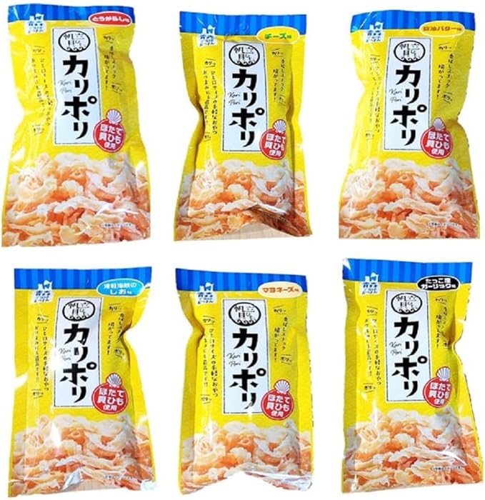 カリポリ貝ひも 18g × 6種セット (しお味・醤油バター味・マヨネーズ味・とうがらし味・ガーリック味・チーズ味) 青森 ホタテ おつまみ1