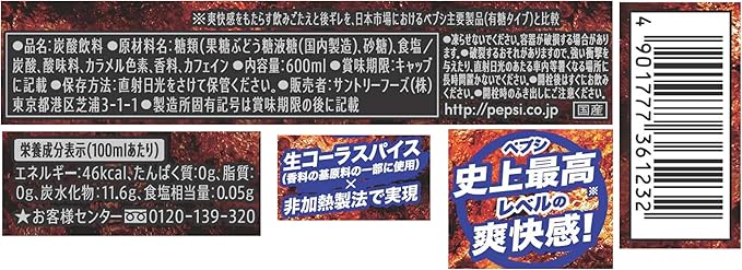 サントリー ペプシ BIG <生> コーラ 600ml×24本1