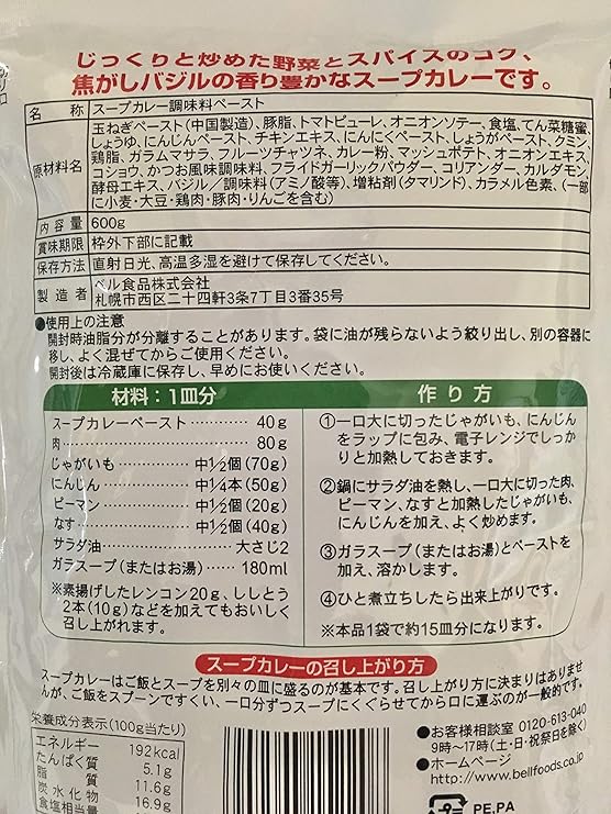 ベル食品 業務用 札幌スープカレー中辛600g 2袋セット1