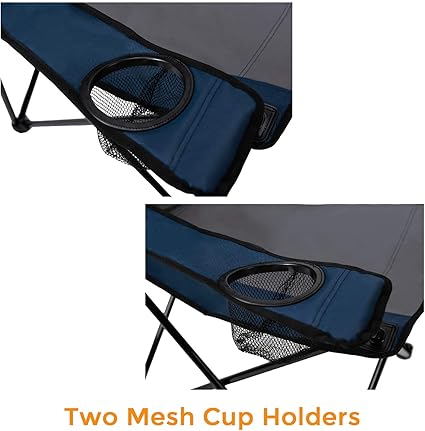 座り心地の良いデザイン : 科学的な構造に基づいて設計されたフルバックのキャンプチェア。2つのドリンクホルダーとクーラーポケットが装備されている。