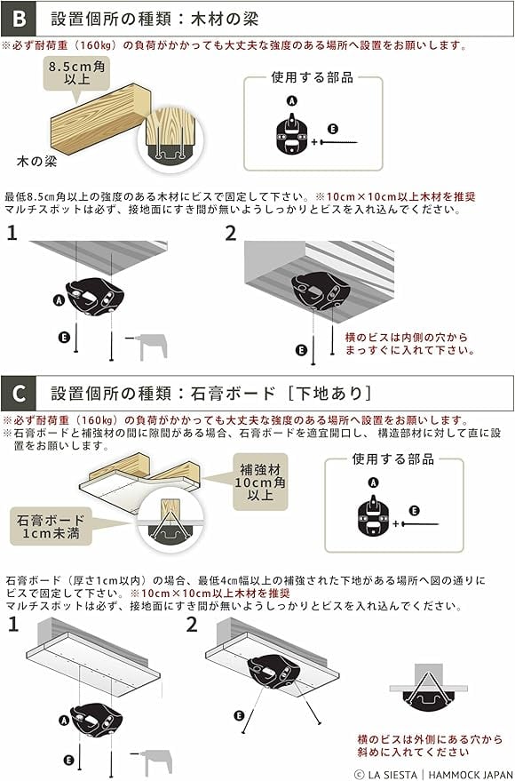 LA SIESTA(ラシエスタ) ハンモックチェア用 純正 取り付け具 CasaMount/カーサマウント[梁・天井固定用](Black/ブラック CMG30-9)1