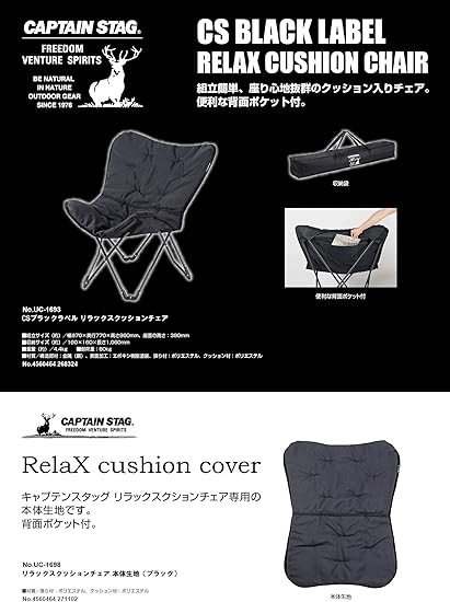 キャプテンスタッグ(CAPTAIN STAG) チェア リラックスクッションチェア専用 本体生地 ブラック UC-16981