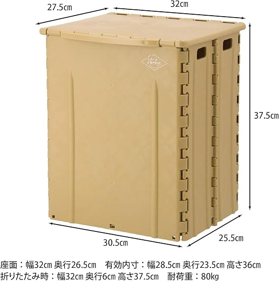 不二貿易(Fujiboeki) 収納ボックス キャンプ用 ゴミ箱 折りたたみ椅子 アウトドアチェア 幅32cm サンドベージュ 耐荷重80kg 861021