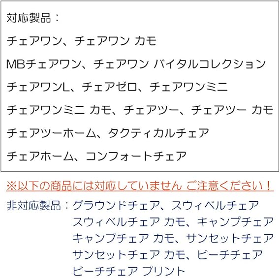 対応製品:チェアワン、チェアワン カモ、MBチェアワン、チェアワン バイタルコレクション、チェアワンL、チェアゼロ、チェアワンミニ、チェアワンミニ カモ