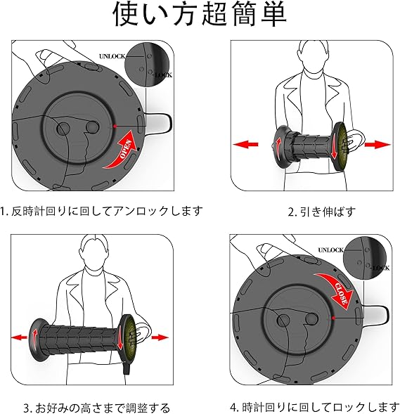 【1秒開閉可能&使用方法簡単】一瞬で開け閉じる折り畳み椅子、使用方法も超簡単です!使用するときは、指を両辺の穴に挿す、両辺に伸ばしてください。好きな高度を引いて回転して固定します。最後にきちんと固定されているか確認してから