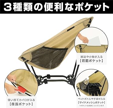 軽量・コンパクト設計で、簡単に組み立てられる「コンパクトキャンプフィットチェア」です