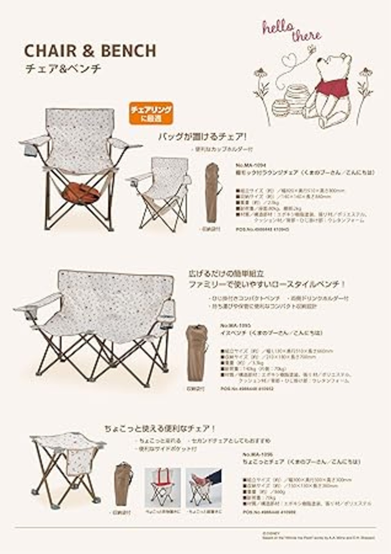 キャプテンスタッグ(CAPTAIN STAG) ディズニー アウトドアチェア チェア 棚モック付ラウンジチェア ドリンクホルダー付 収納袋付 くまのプーさん/こんにちは MA-10941
