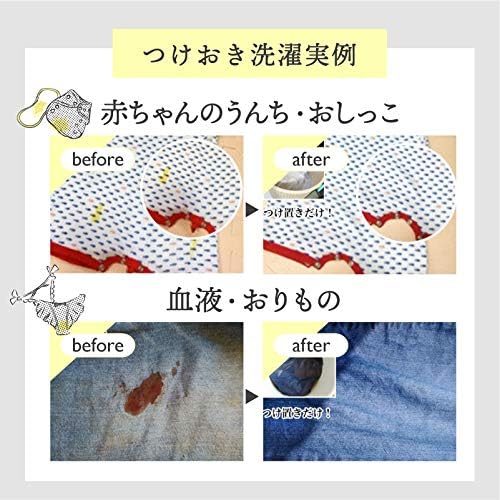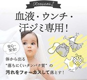 【身体から出る汚れにフォーカス!】布おむつに付いた汚れ、下着に付いた血液のシミ、ベビーの母乳やミルクの吐き戻し・食べこぼし、ワイシャツの襟汚れや汗ジミなど、身体から出る”落ちにくいタンパク質”の汚れにフォーカスして落とします。