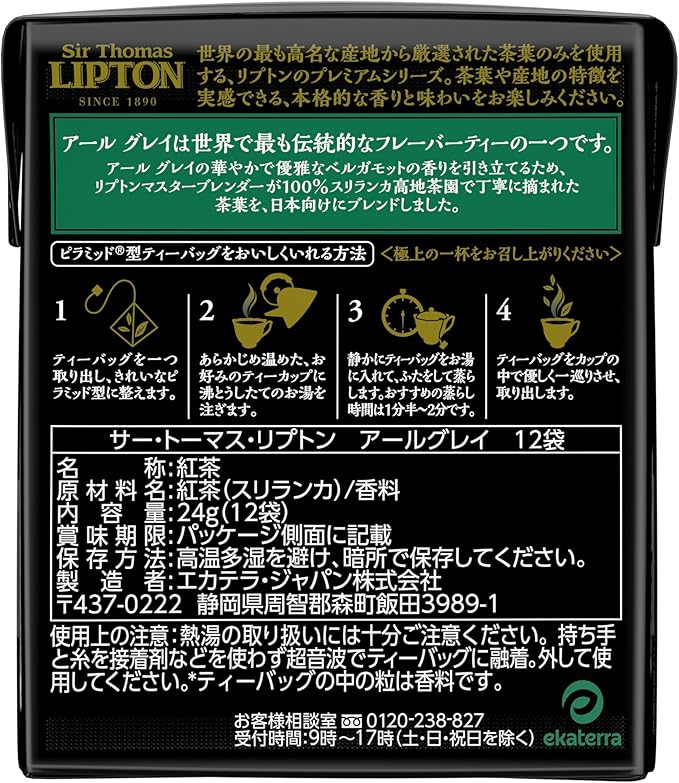 サー・トーマス・リプトン紅茶 アールグレイ ティーバッグ 12袋×6個1