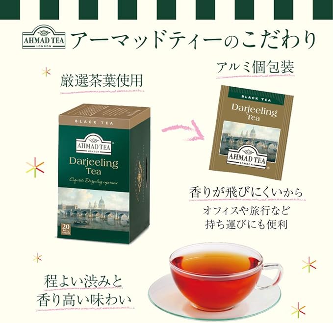 【セット商品】 AHMAD TEA (アーマッドティー) グレートテイストアワード受賞商品 ティーバッグ 4種80袋 アソート(ダージリン アールグレイ イングリッシュティーNo.1 ルイボス&シナモン 20袋入り各1個)1