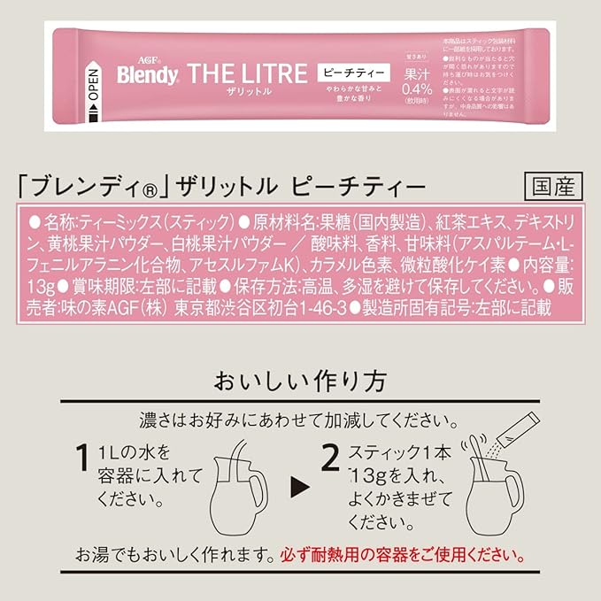 AGF(エージーエフ) ブレンディ ザリットル ピーチティー 5本×3箱 【 1リットル用 】【 フルーツティー 】【 紅茶 スティック 】【 ティーバッグ不要 】1