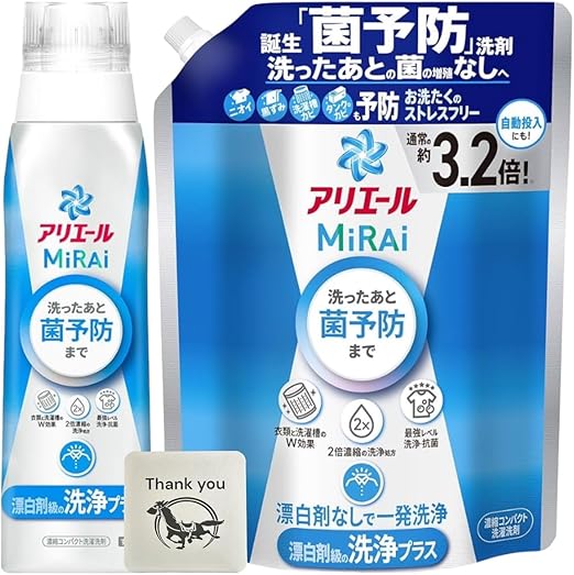 アリエール ミライ MiRAi 洗濯洗剤 漂白剤級の洗浄プラス 本体 510g + 詰め替え 大容量 920g 各種1個セット + Kunutonnオリジナルロゴ入りおまけ付