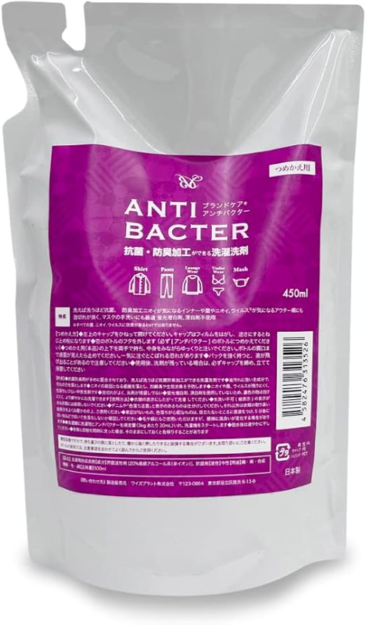 抗菌防臭剤入液体洗濯洗剤 アンチバクター【プロ仕様】詰め替えパウチ450mL