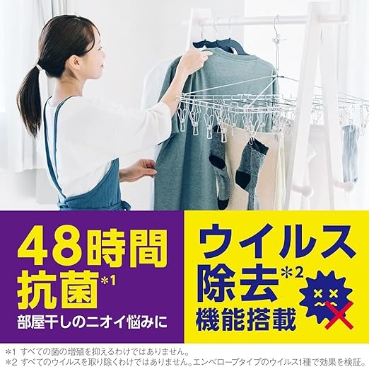 部屋干し臭、干し忘れ臭、戻り生乾き臭、をしっかり防いで気持ちよく洗える液体洗剤です