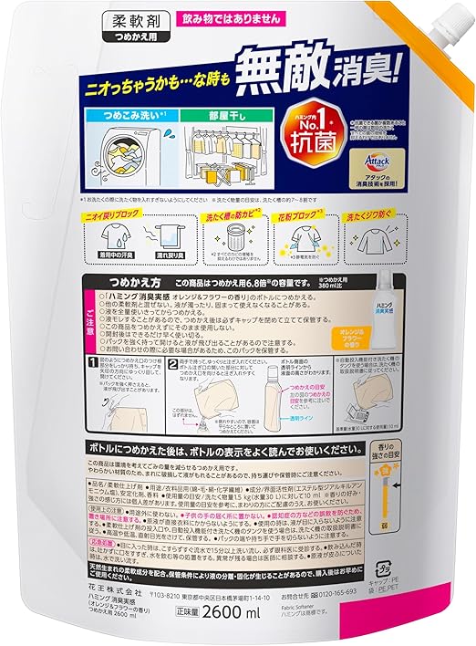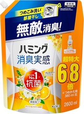【大容量】ハミング消臭実感 柔軟剤 つめこみ洗いも、部屋干しも、無敵消臭!ハミング内No.1抗菌 オレンジ&フラワーの香り つめかえ用 2,600ml