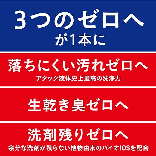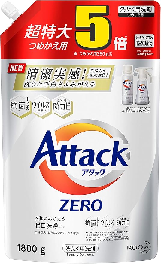 【大容量】アタック 液体 ゼロ(ZERO) 洗濯洗剤(Laundry Detergent) 詰め替え 1800g (清潔実感! 洗うたび白さよみがえる) リーフィブリーズの香り