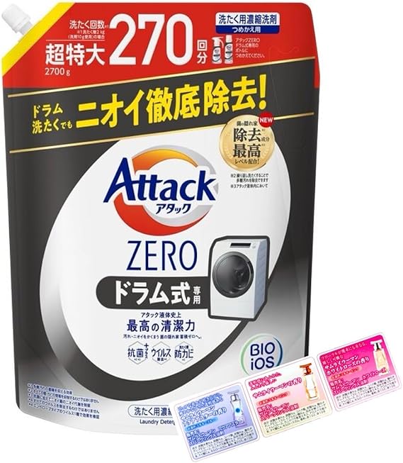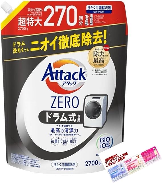 デカラクサイズ アタックZERO 洗濯洗剤 液体 アタック液体史上 最高の清潔力 ドラム式専用 詰め替え 2700g 大容量 (1)