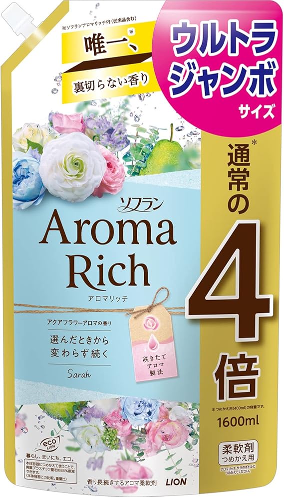 【大容量】 ソフランアロマリッチ ソフラン アロマリッチ 液体 サラ(アクアフラワーアロマの香り) 柔軟剤 詰め替え ウルトラジャンボ 1600ml1