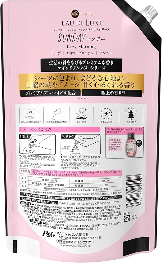 レノア オードリュクス 柔軟剤 マインドフルネスシリーズ サンデー 詰め替え 1,360mL1