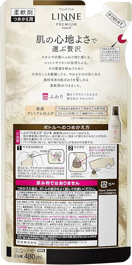 【まとめ買い】ハミング LINNE(リンネ) プレミアム仕上げの柔軟剤 ふわり 無香性 詰め替え用 480ml×2個1