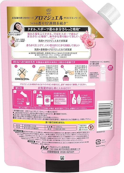 レノア ハピネス アロマジュエル 香り付け専用ビーズ ホワイトサボン 詰め替え 特大 1,080mL1