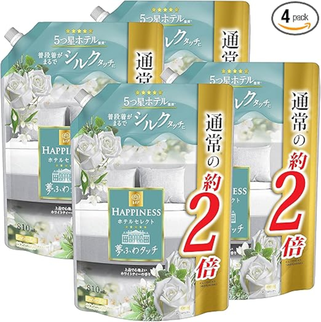 レノア ハピネス 夢ふわタッチ 柔軟剤 ホワイトティー 詰め替え 810mL x4袋 ケースバンドル【まとめ買い】1