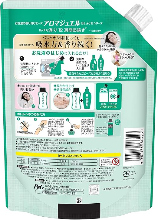 レノア ハピネス アロマジュエル 香り付け専用ビーズ パステルフローラル&ブロッサム TinyTAN限定コラボパッケージ 詰め替え 1,080mL1