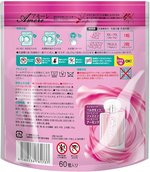 洗濯洗剤 アフューム arFUM アモーレ amore ジェル ボール型洗濯洗剤 抗菌 柔軟剤入り 詰替 詰め替え 60粒1