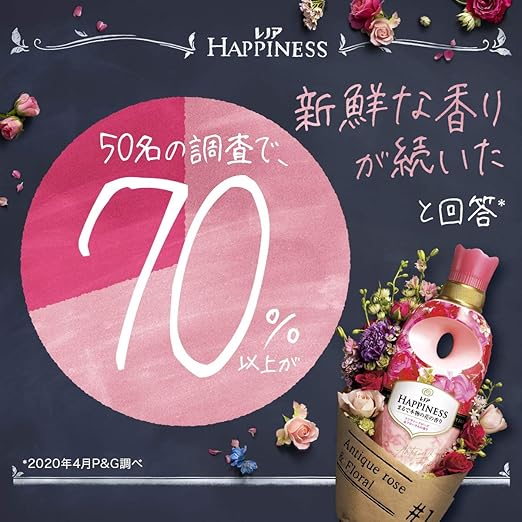 新改良*のレノアハピネスは、新鮮な香りを閉じ込めたハピネスハーバリウムカプセル配合。 動くたびカプセルが弾け、夜まで新鮮な香りが長続きします。(*2021年2月更新)