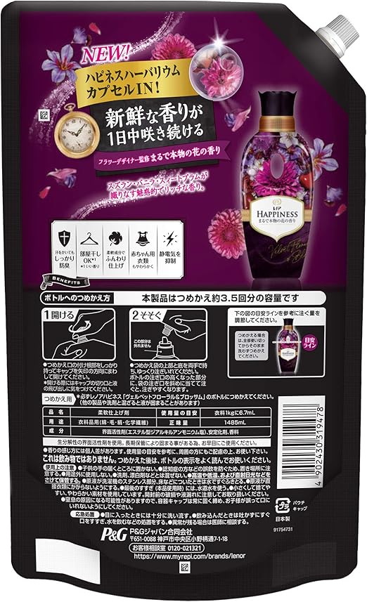 レノア ハピネス 柔軟剤 ヴェルベットフローラル&ブロッサム 詰め替え 約3.5倍(1485mL) 1袋1