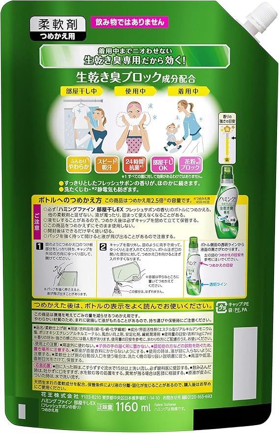 【Amazon.co.jp 限定】【まとめ買い】ハミング Fine(ファイン) 柔軟剤 部屋干しEX フレッシュサボンの香り 詰め替え 大容量 1160ml×2個1