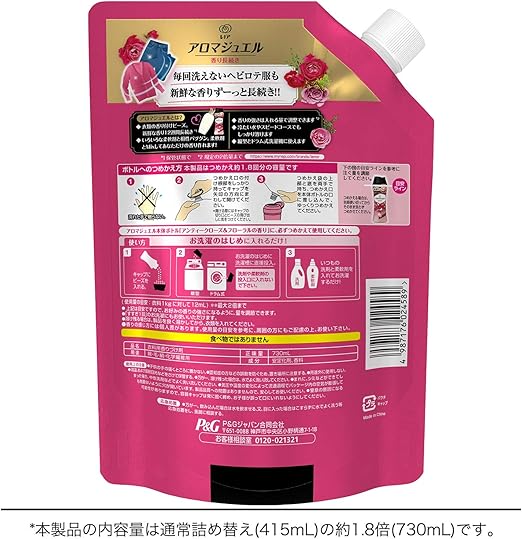 レノア ハピネス アロマジュエル 香りづけ専用ビーズ ヘビロテ服も新鮮な香り長続き アンティークローズ&フローラル 詰め替え 大容量 約1.8倍(730mL)1