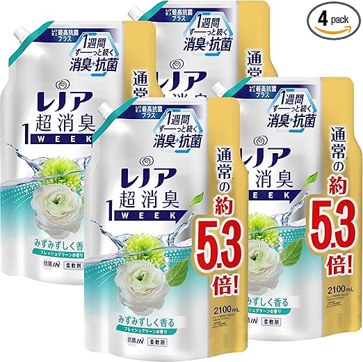 [ケース販売] [大容量] レノア 超消臭1WEEK 柔軟剤 フレッシュグリーン 詰め替え 2,100mLx4袋1