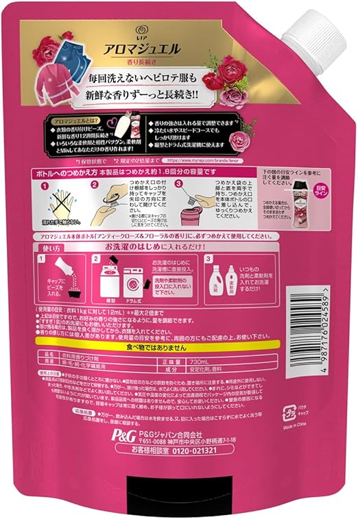 【まとめ買い】 レノア ハピネス アロマジュエル 香りづけ専用ビーズ ヘビロテ服も新鮮な香り長続き アンティークローズ&フローラル 詰め替え 大容量 約1.8倍 (730mL) × 2個1