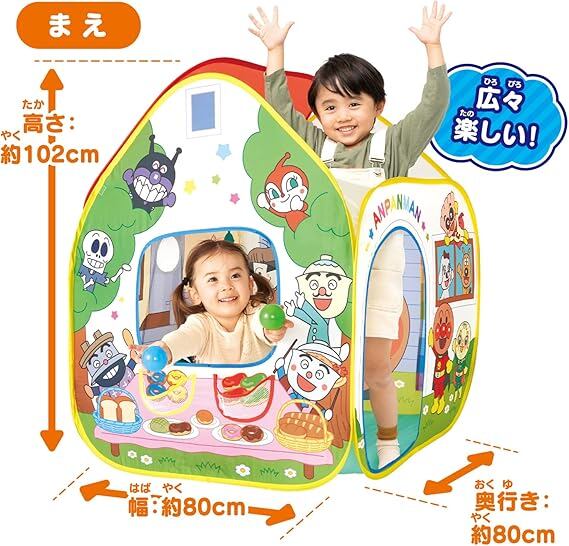 アンパンマンとなかまたちがいっぱいの楽しいデザインのボールテントで、ボール遊びやお店やさんごっこなど、全身を使った10のあそびが楽しめます。
