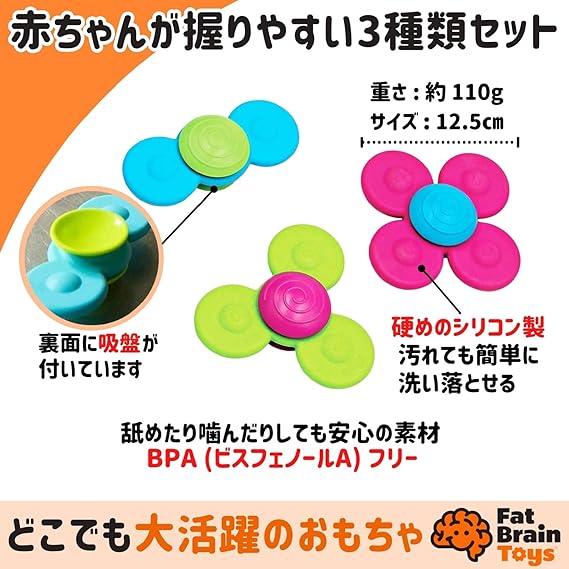 ファットブレイン(Fat Brain Toys) シリコーン 赤ちゃんおもちゃ ワーリースクイグズ 歯がため クルクル回る吸盤付き 【正規品】 FA210-11