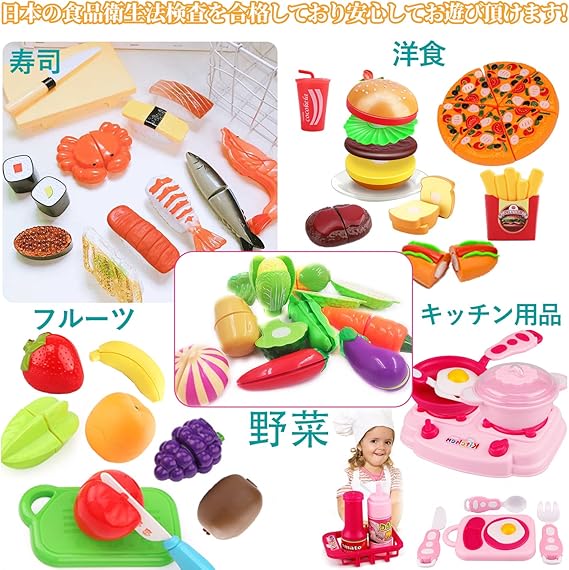 【知育に良さそう】種類が多く色が鮮やか、とてもバリエーション豊かにいろいろな食材が入っていました、子供たちのご注目を引き付けられ、色の認識から物の覚えまでに使ってとにかく楽し。しかも、 それに切りながら、色々組み合わせたり、お皿に並べたりして、発想力も育てる事が出来ます。子供の右脳開発、手眼調和、認識能力、創造力などを向上させるだけでなく、集中力などを高めます、はお子様の手先が器用になる能力を鍛えさせ。脳の発達には良いと思います。子供たちと遊びながら知恵を発達させましたが、また親子時間の質を改善しました。