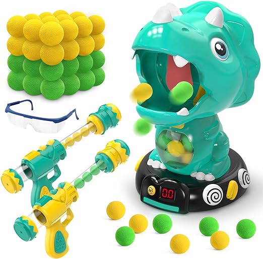 EagleStone おもちゃ 恐竜 的あて 男の子 ポッパーガン シューティング ポッパーガン2本 スポンジ弾48個 室内ゲーム 移動射撃ターゲット 自動採点 障害回避機能 省エネ 恐竜鳴き声 電子ターゲット 室内遊び 保護ゴーグル付き 小学生 子供 女の子 プレゼント クリスマス 新年 ハロウィン誕生日 ギフト 8808-10B1