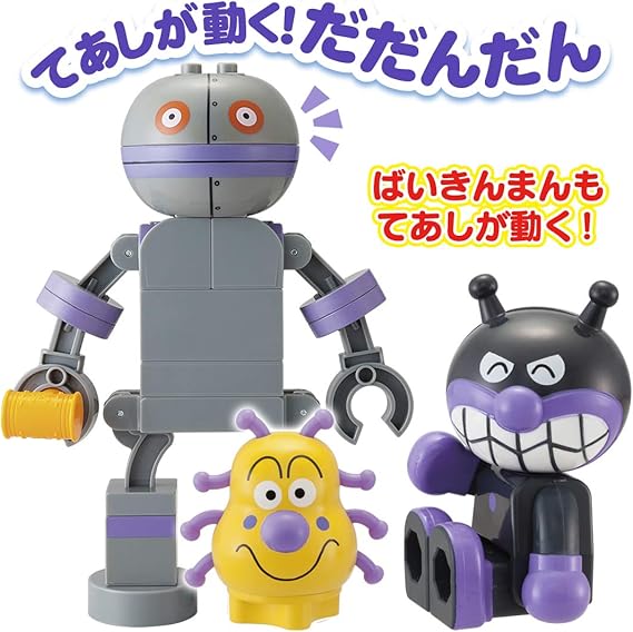 ブロックによる組み換えあそびでお子様の想像力を育み、自分だけのバイキンメカも組み立てることができます。